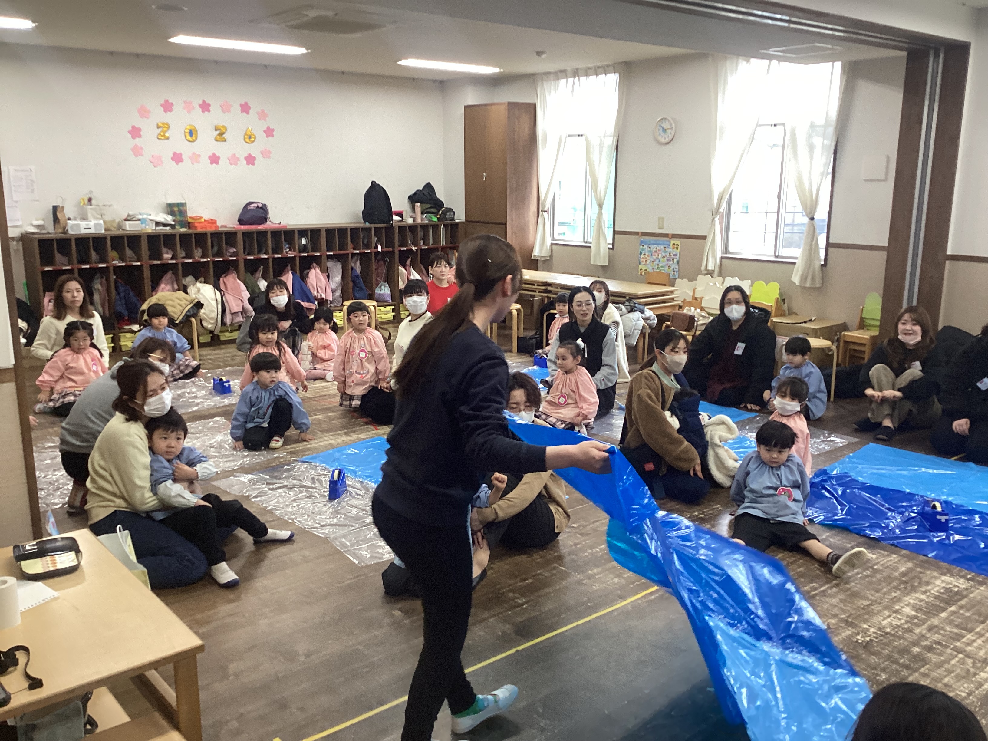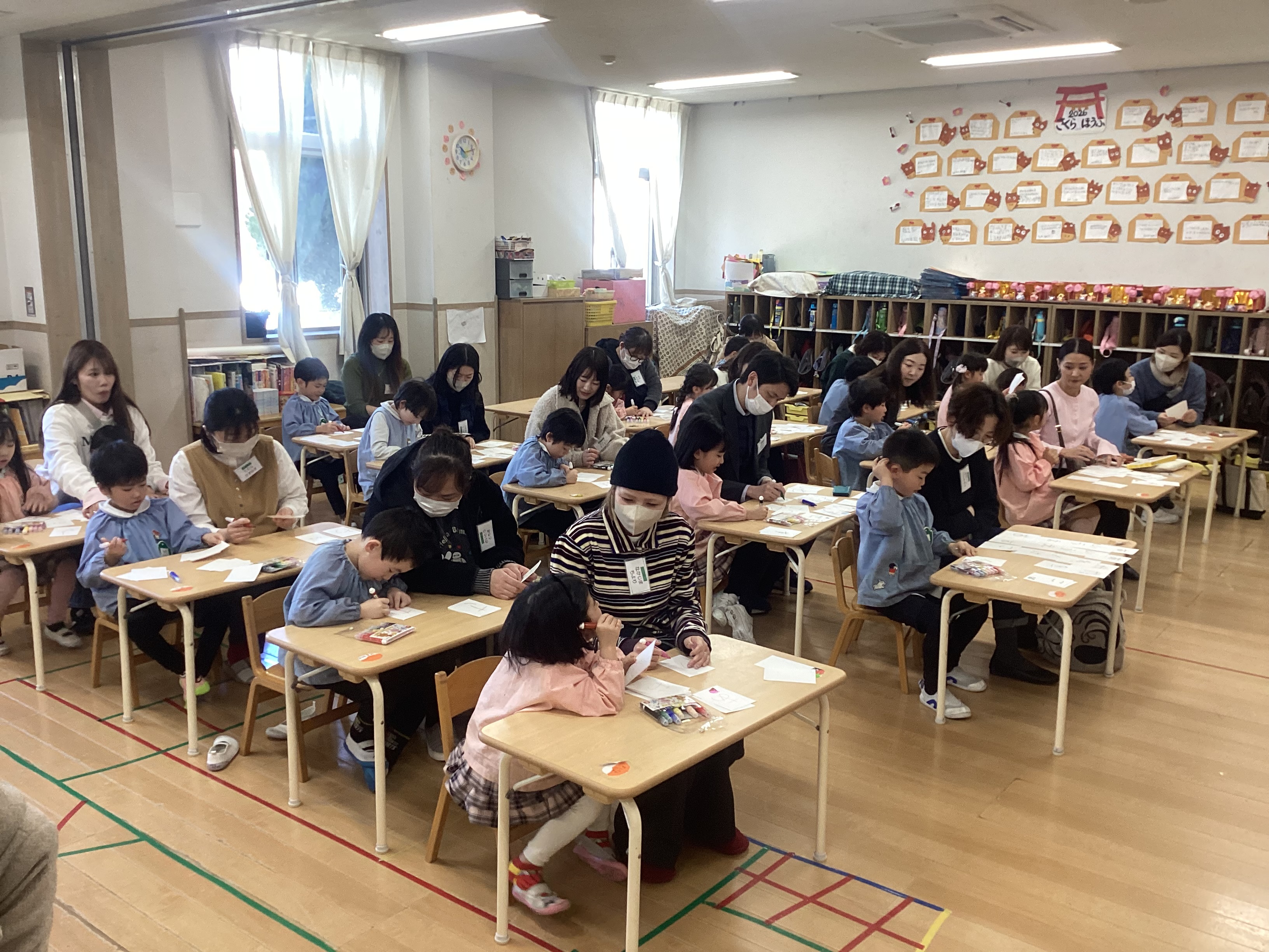 今日は3学期の始業式がありました。園長先生に「楽しい冬休みでしたか??3学期も、普段からやってみたいことを沢山探して楽しんでいきましょう!!」というお話に、元気いっぱい「は~い!」と応えたり、2026年は“午年” ”丙午”のお話を聞いて、新しいことに挑戦していく意欲が湧いている様で、目を輝かせる子ども達の姿が見られました。2026年が素晴らしい1年になりますように・・・。