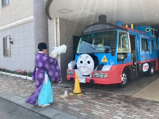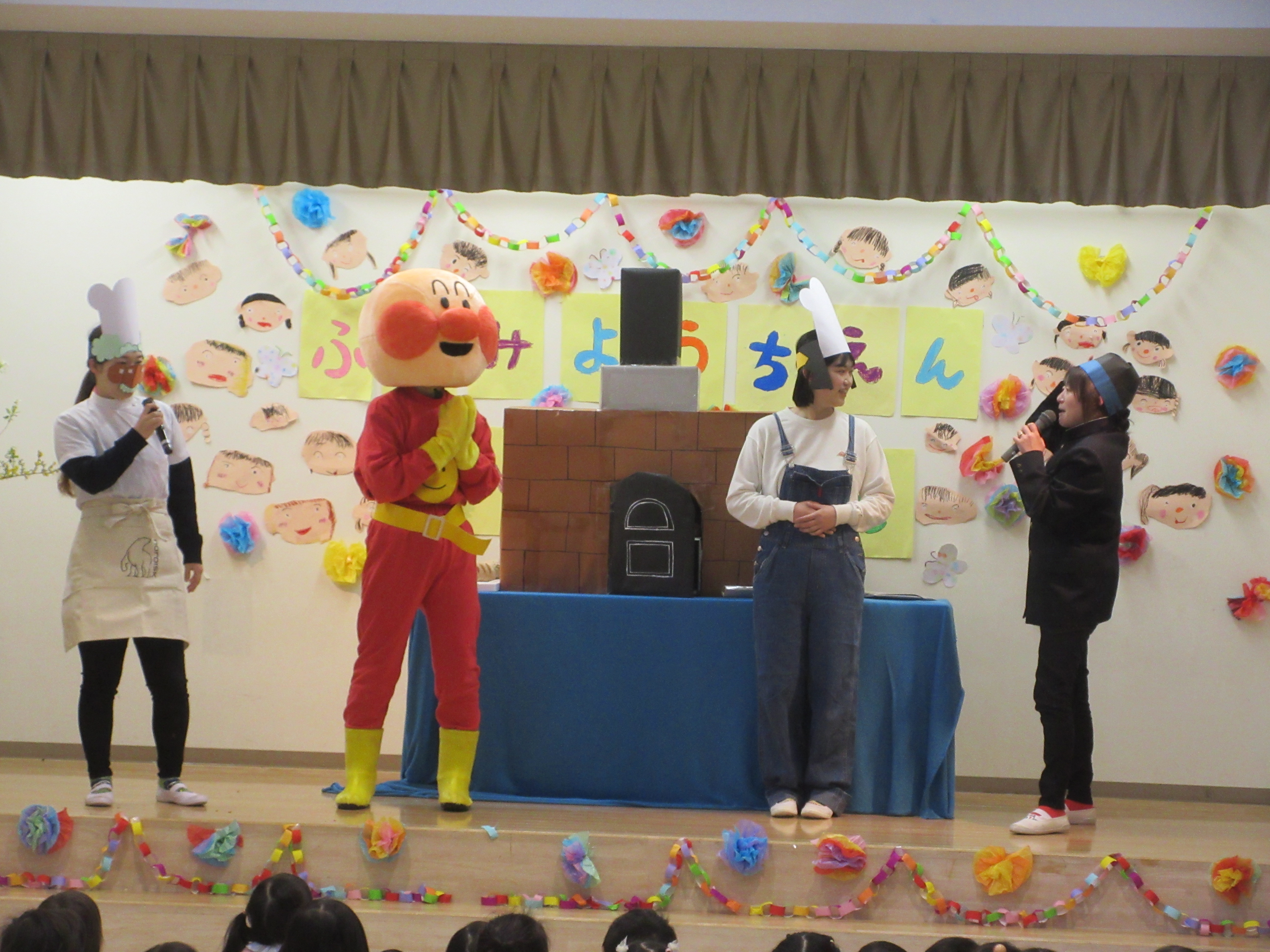 緊張した表情の子どもたちもいましたが、お楽しみコーナーでアンパンマンの登場やバスごっこで笑顔が見られました!