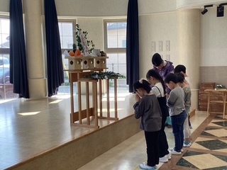 今日は新年度のお祓いがあり、卒園したばかりの学童メンバーも子どもたちを代表して手を合わせ、安全に過ごせますようにと祈願を行いました。一緒に参加していた年長組も宮司さんに沢山質問をして興味津々!一年間、みんなが健康で安全に過ごすことができるよう努めて参ります。