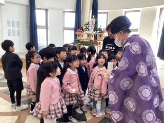 宮司さんの柏手に子ども達も真似をするなど興味を持って参加していました。