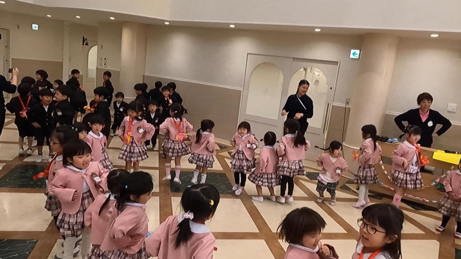 新入園園児歓迎会がありました!入園して2週間が経ち、年少さんも幼稚園生活になれてきた様子が見られます。歓迎会でも先生の出し物を嬉しそうな表情で見て、年中・年長さんの踊りを興味津々で一緒に踊っていました!