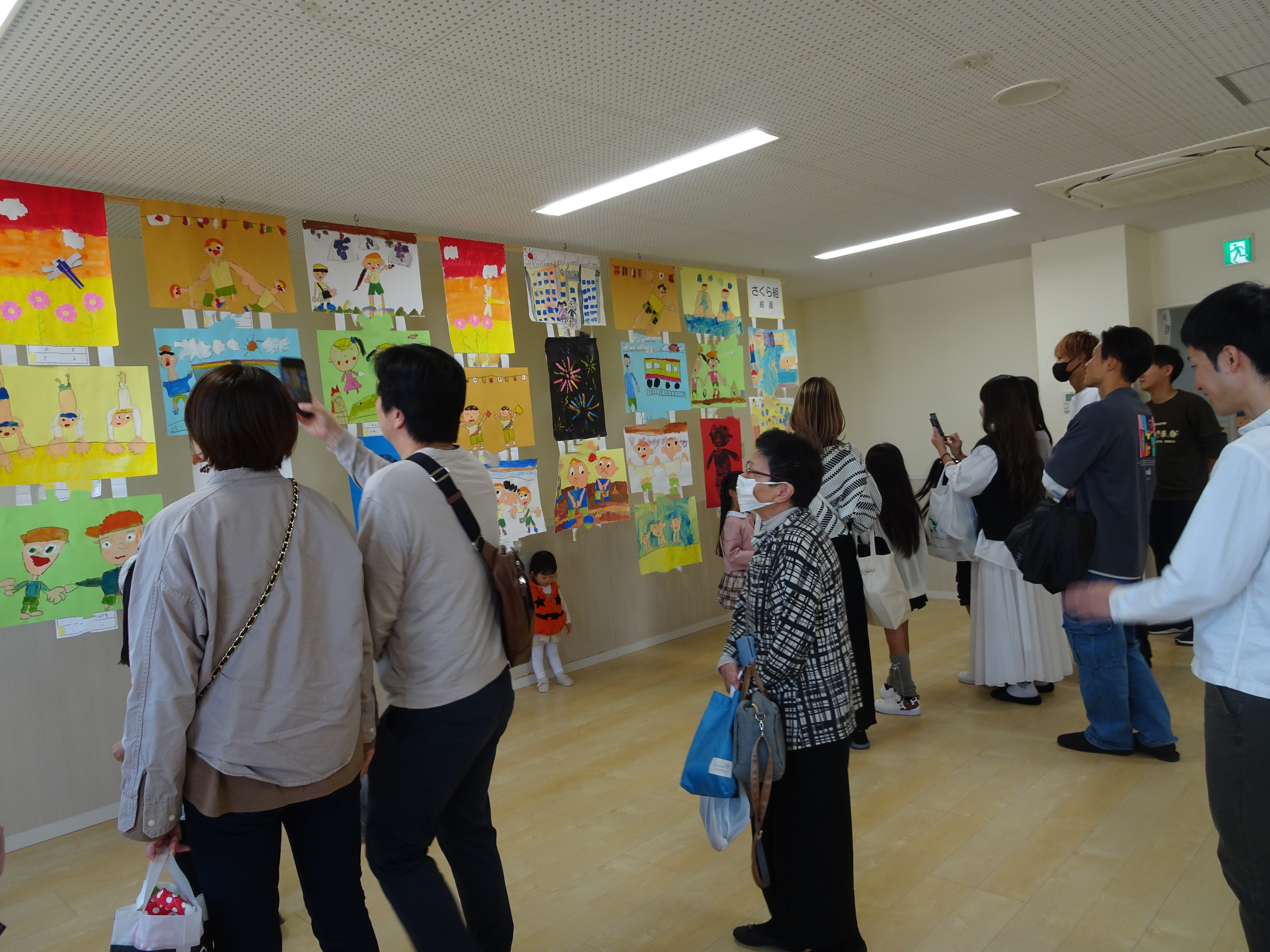 今日は、作品展がありました。秋晴れの土曜日!お父さん・お母さん・おじいちゃま・おばあちゃまも見に来てくださり、ダイナミックに表現した絵画や、親子で作った作品を観覧して頂きました。