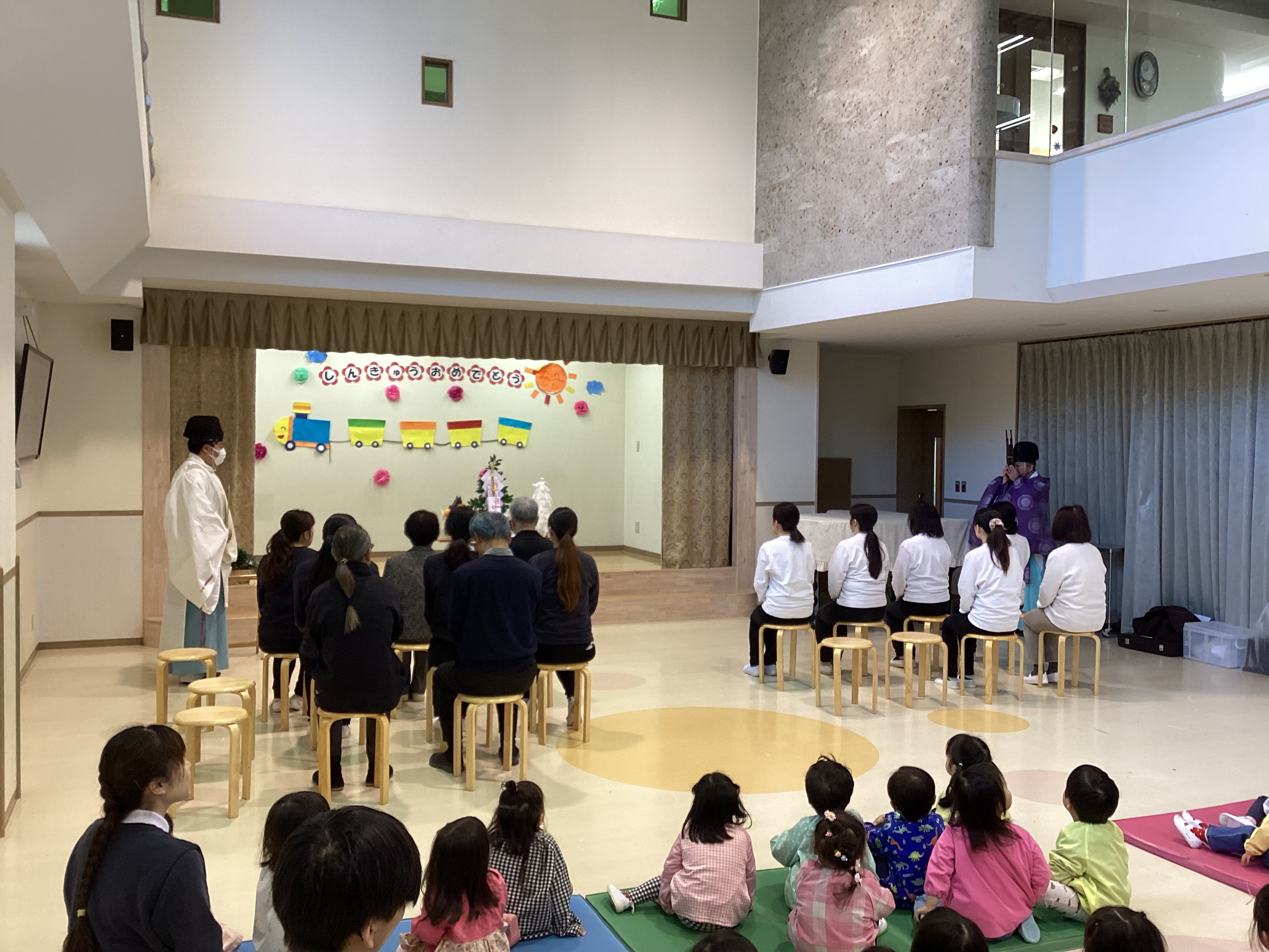 宮司さんの柏手に子ども達も真似をするなど興味を持って参加していました。
